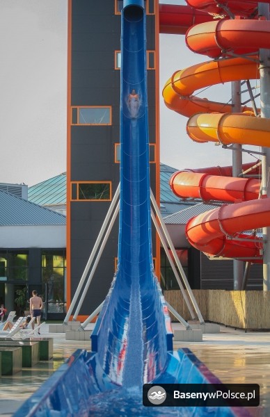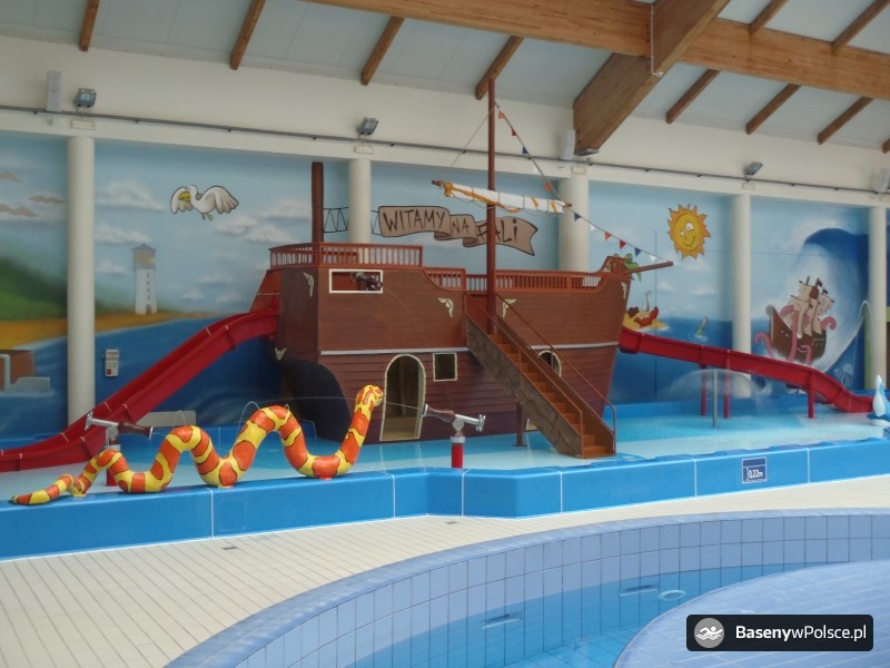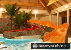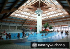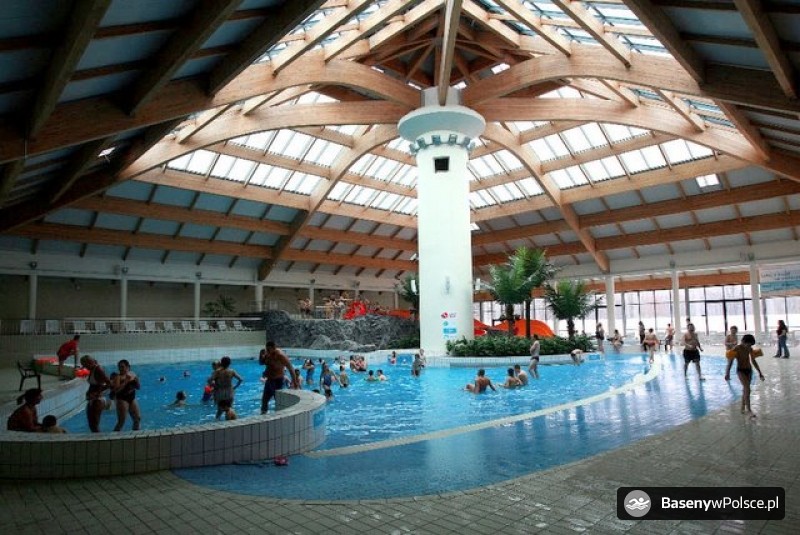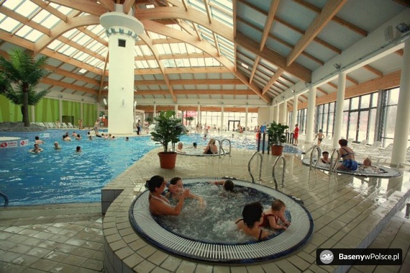 W skład części wewnętrznej wchodzą cztery baseny: sportowy połączony z basenem rekreacyjnym o nieregularnych kształtach, basen dla dzieci oraz basen z falą. Podobnie jak przed laty ten ostatni stanowi jedną z głównych atrakcji kąpieliska. Baseny znajdujące się w zadaszonej części obiektu mają różną temperaturę wody i głębokość. Z myślą o dzieciach przygotowano brodzik z zabawkami. Latem 2009 roku otworzyliśmy długo oczekiwane przez naszych Klientów dwie Megazjeżdżalnie. Punkt Startowy umieszczony wysoko na wieży o wysokości 16,5 m zapewnia piękną panoramę na Aquapark i otaczającą go zieleń oraz daje około pół minuty niezapomnianej zabawy podczas zjazdu. Zjeżdżalnie mają długość odpowiednio 130 m i 146 m. Multimedialne efekty świetlne wewnątrz zjeżdżalni gwarantują, że wszyscy, którzy skorzystają z tej atrakcji przeżyją niesamowitą przygodę podczas zjazdu. Atrakcja ta dostępna jest cały rok. Dodatkowo w sezonie letnim zapraszamy na pierwszą w Polsce Megazjeżdżalnię Kamikaze, gwarantowane niezapomniane ekstremalne wrażenia! Nasi Klienci dla relaksu i wyciszenia mogą również korzystać z masaży wodnych oraz jacuzzi.