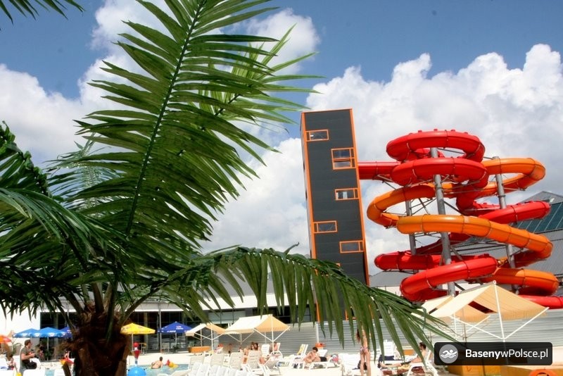 W letnie dni atrakcjami kusi część zewnętrzna składająca się z trzech basenów, plaży z leżakami oraz ogromnego placu zabaw dla dzieci. Dla spragnionych ochłody proponujemy skorzystanie z Baru Lodowego w cieniu palm, który swą formą przywodzi na myśl karaibską chatę. Dwa z basenów usytuowanych w tej części kąpieliska wyposażone są w siedziska do masażu powietrznego, rwący nurt dzikiej rzeki oraz wodospady. Trzecim basenem jest brodzik dla dzieci, w którym temperatura wody wynosi aż 32°C. Specjalnie dla najmłodszych przygotowaliśmy dwie minizjeżdżalnie wiodące wprost do brodzika. Kąpieli słonecznych można zażywać na rozstawionych wokół basenów 500 leżakach lub też wypoczywać w cieniu drzew.